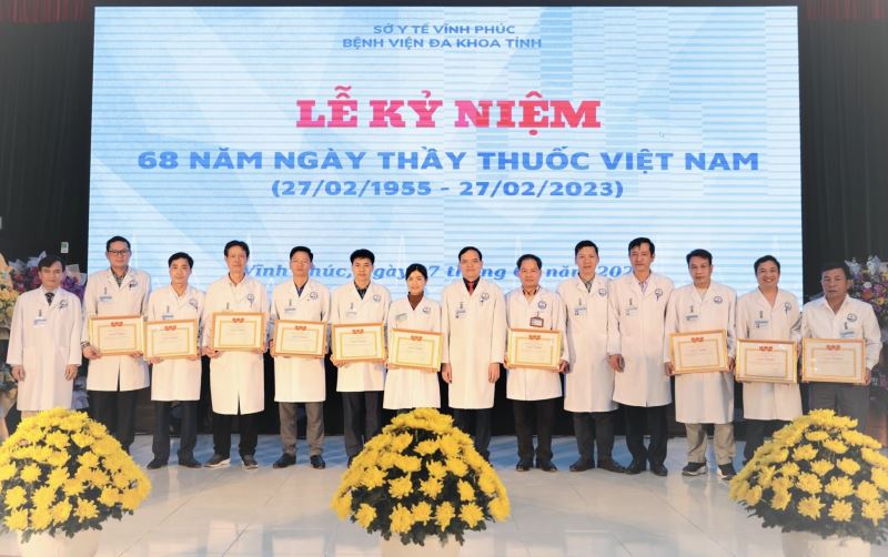Chiều 27/2, Bệnh viện Đa khoa tỉnh Vĩnh Phúc long trọng tổ chức lễ kỷ niệm 68 năm Ngày thầy thuốc Việt Nam (27/2/1955 – 27/2/2023) và trao tặng bằng khen, giấy khen của các cấp lãnh đạo, đảng, chính quyền và các đoàn thể cho các tập thể, cá nhân có thành tích xuất sắc trong năm 2022.